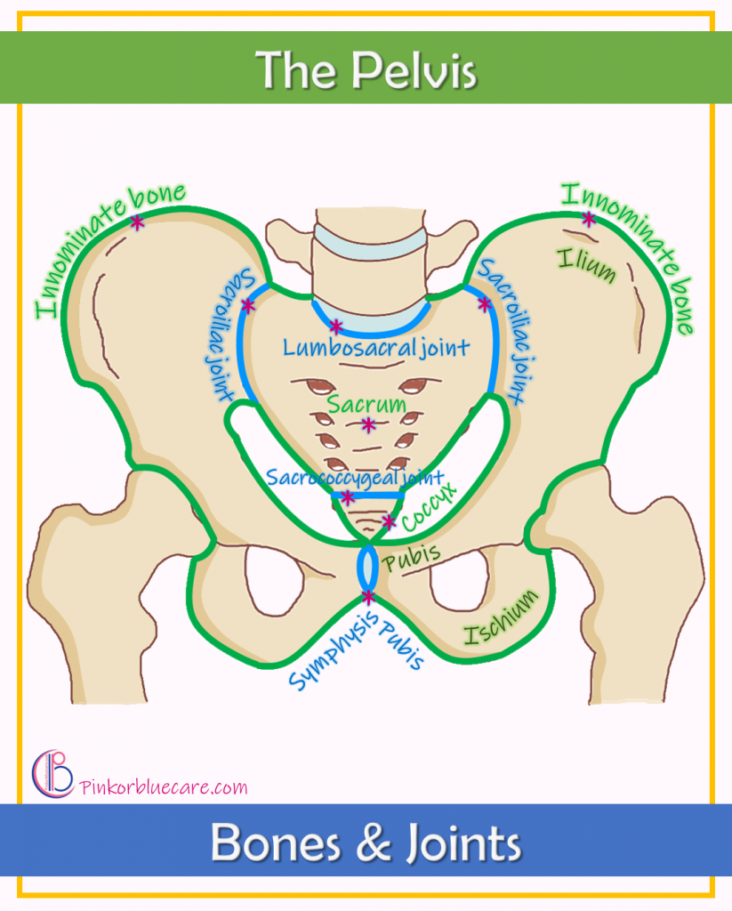 The pelvis protects the reproductive organs, and is the bony passage through which the baby must pass in order to be born.