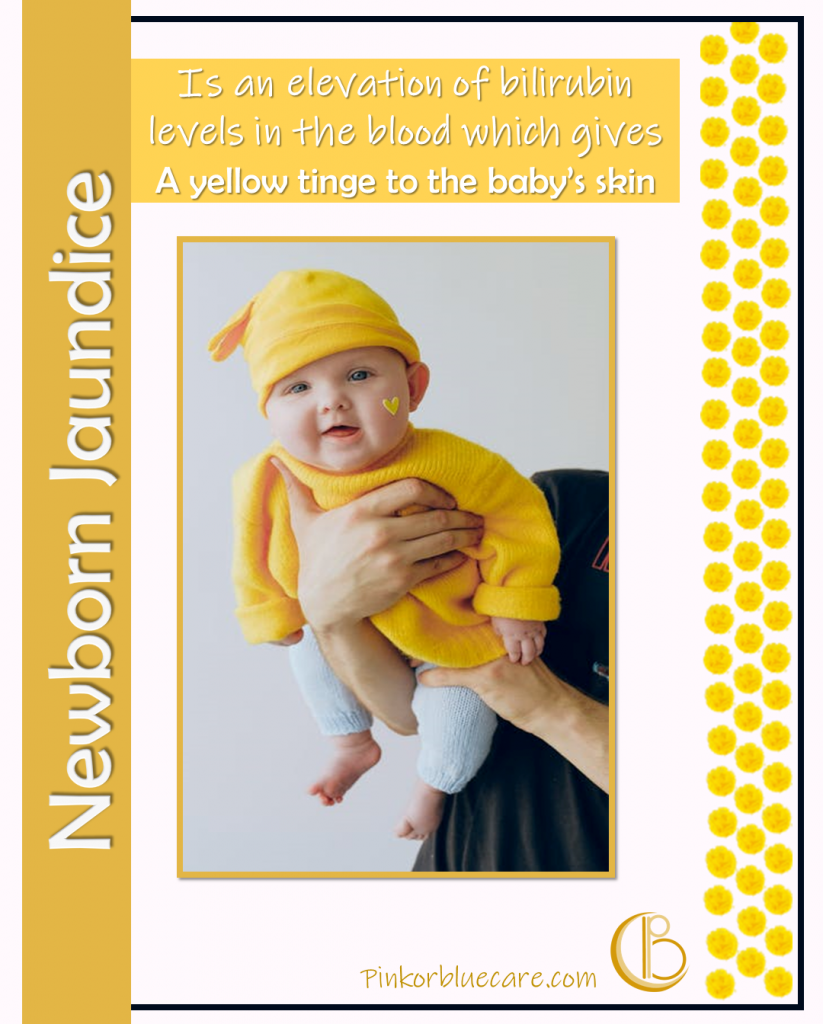 Jaundice is an elevation of bilirubin levels in the blood which gives a yellow tinge to the babyโs skin.