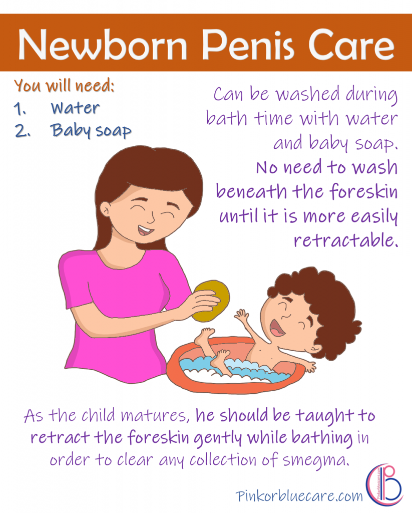 Baby penis can be washed during bath time with water and baby soap.