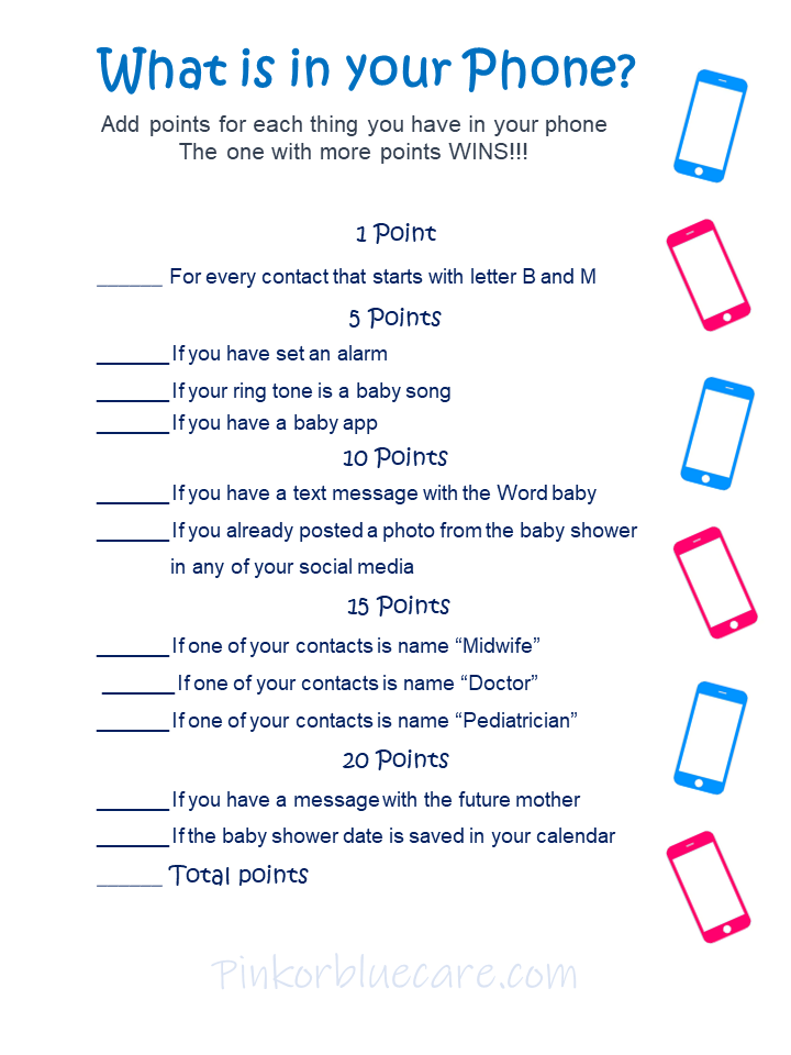 What is in your Phone? In this game you will add points for each thing you have in your phone. The one with more points WINS!!! Enjoy
