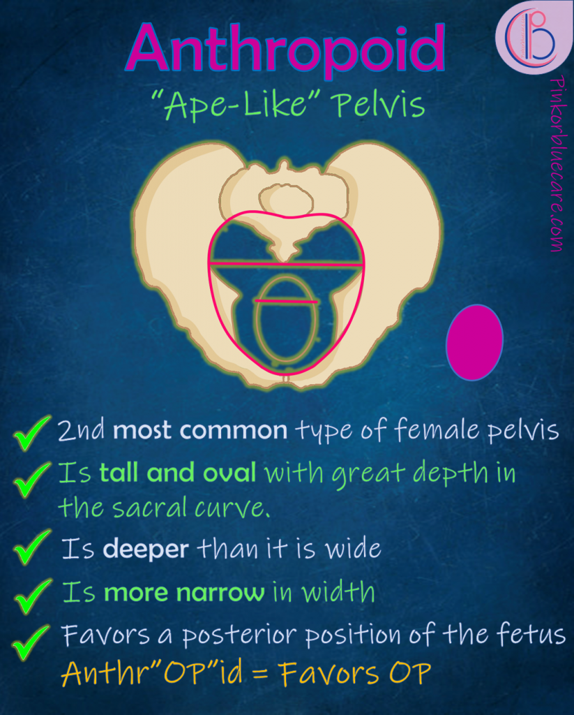 We can say all types of pelvis comes down to depth (sacral curve and inlet dimension) in relationship to the width (between spines, of pubic arch and between ischial tuberosities) .